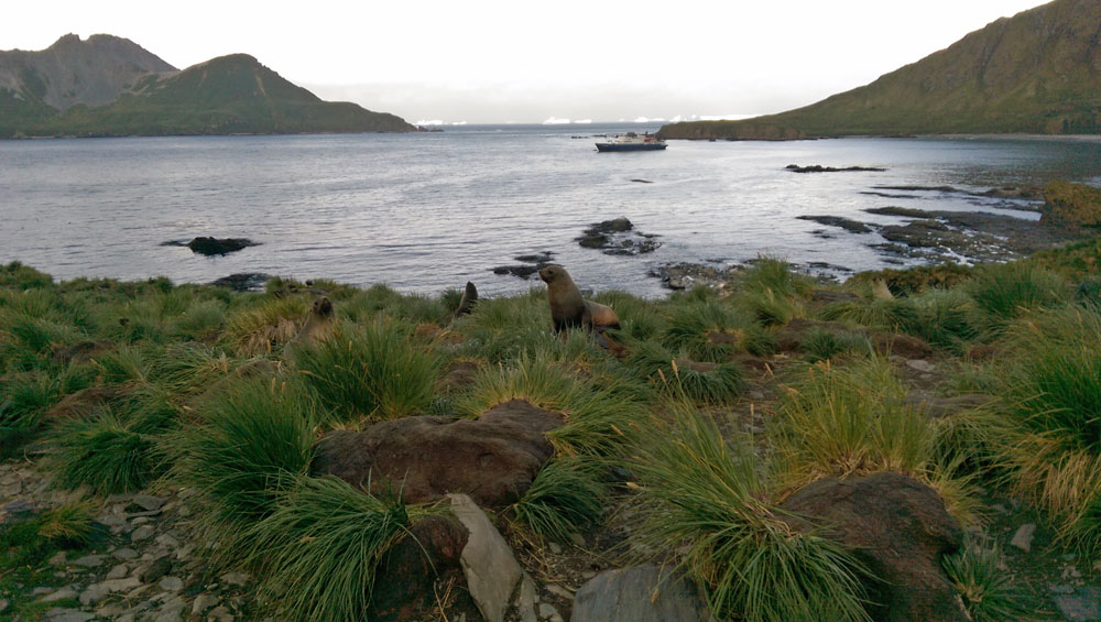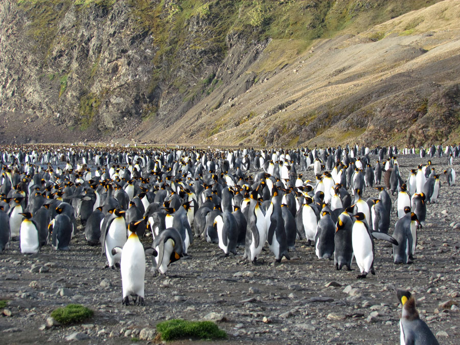 At Stromness we walked past an abundance of penguins and seals to the base of Shackleton’s WaterFall. This is where he and two companions completed their 36-hour trek from King Haakon Bay on the island’s southern coast. It is still a dangerous place--a woman was killed here in a fall two years ago. This season two people broke bones. Watch your step.