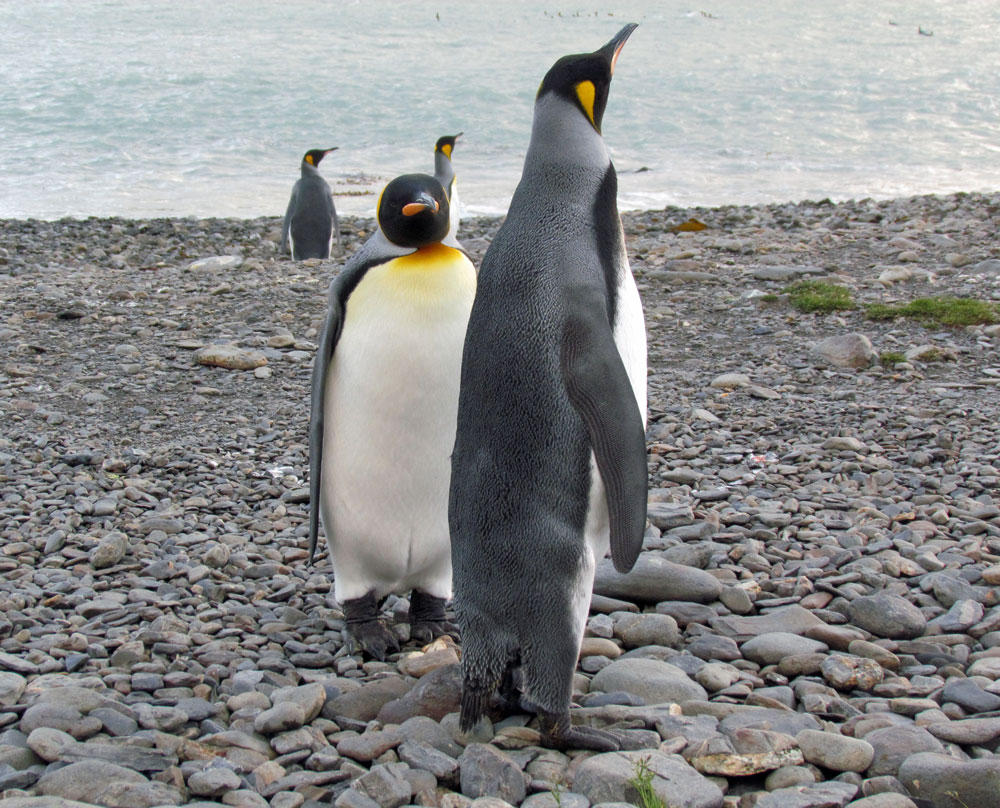 Exiting the Beagle Channel, we headed not south but east. Our first stop was the Falkland Islands. Note: when in Argentina, call these the Malvinas. Despite the outcome of the brief 1982 war, Argentinians still think they own the place. The British have just sent a couple of helicopters to live there, just in case. The ship made about 12 knots. At times the wind picked up, so you knew you were at sea. You are advised of “movement on the ship.” This means it’s hard to stay on your feet or feel very well. We prudently carried pills (Dramamine). The dining room tables are fastened down, but a couple of times we had to cling to the table edges to keep the chairs from sliding into the walls or into each other. This made eating a challenge. We were informed of the two worst moments in sea-sickness: