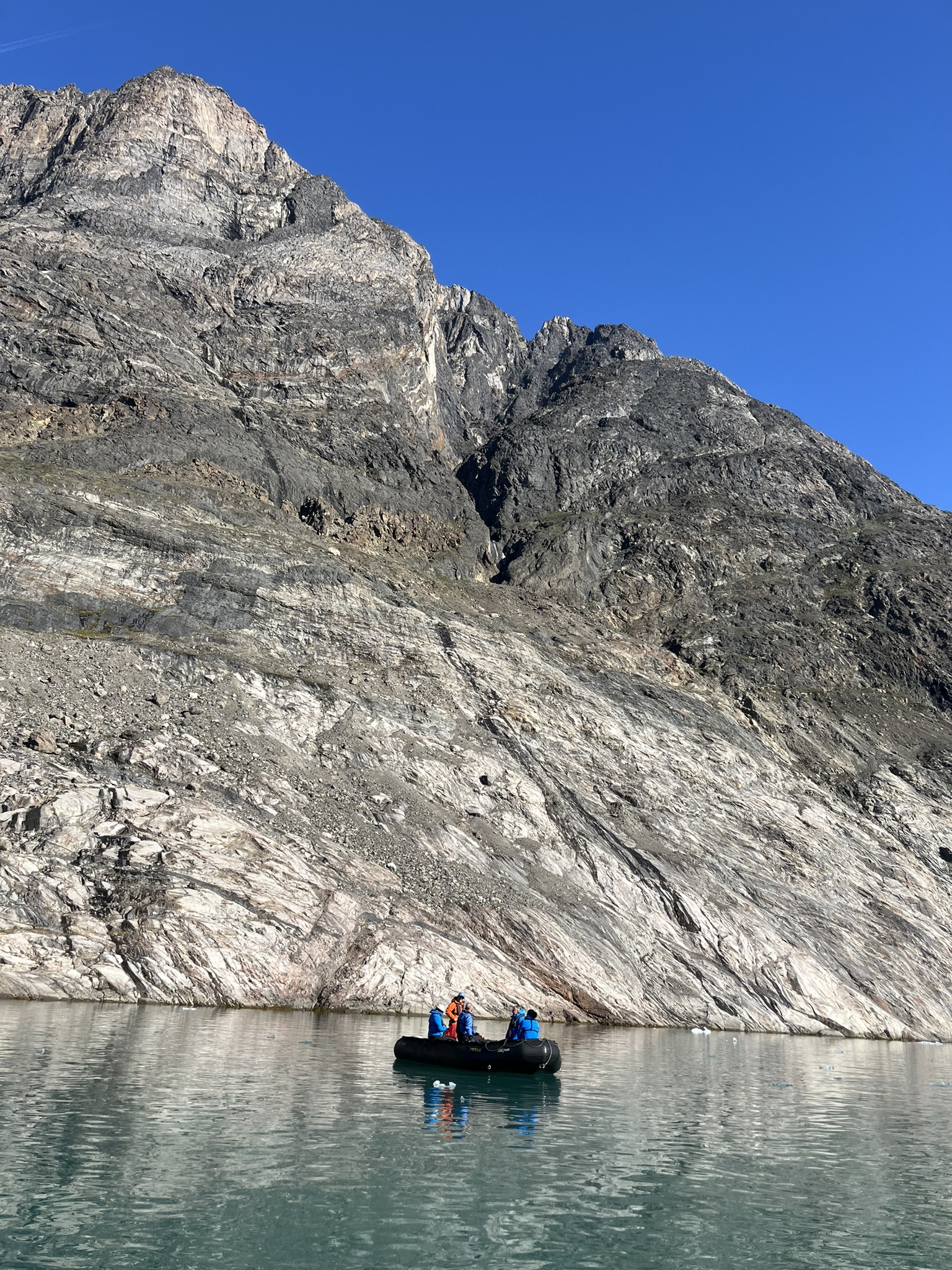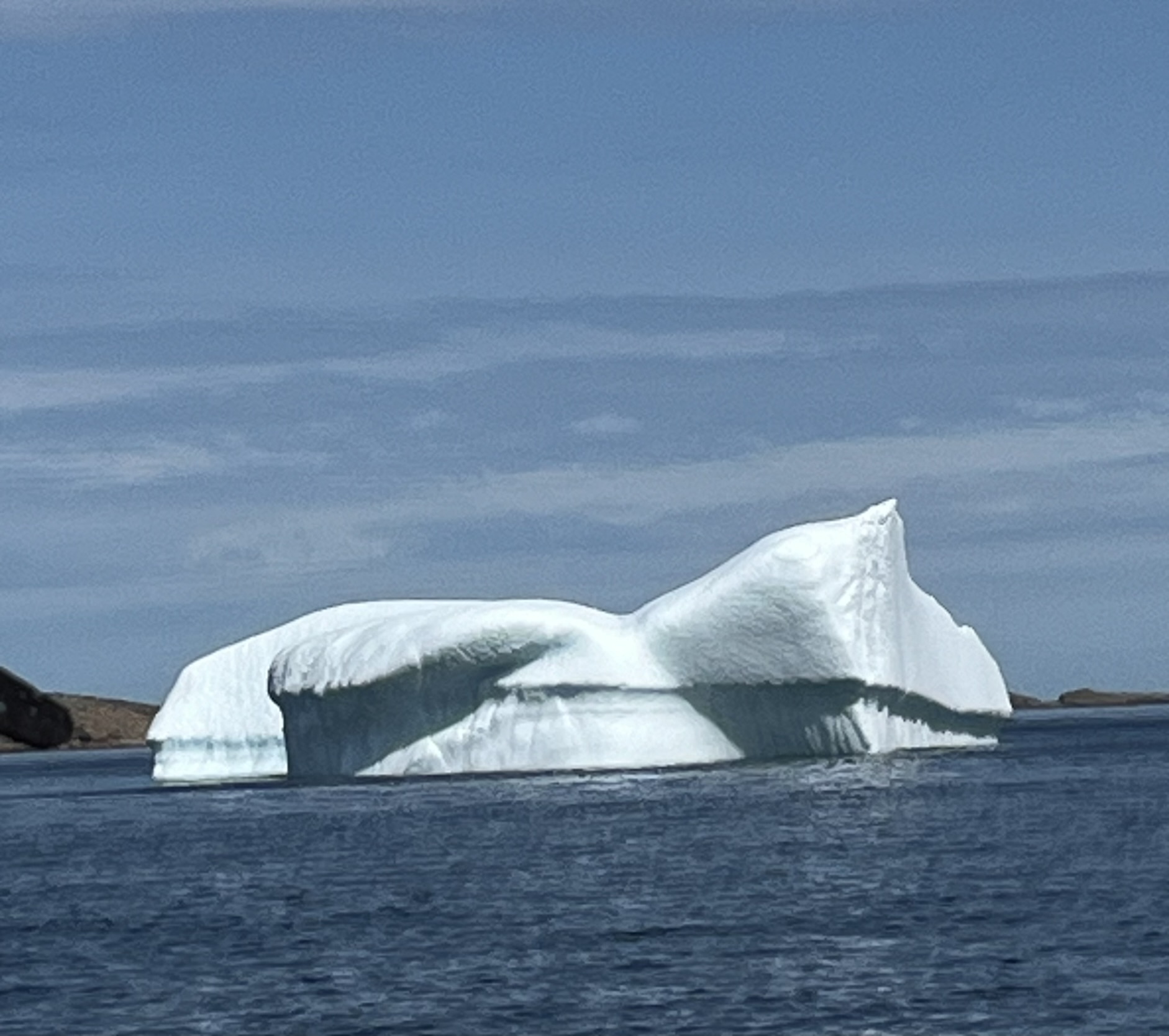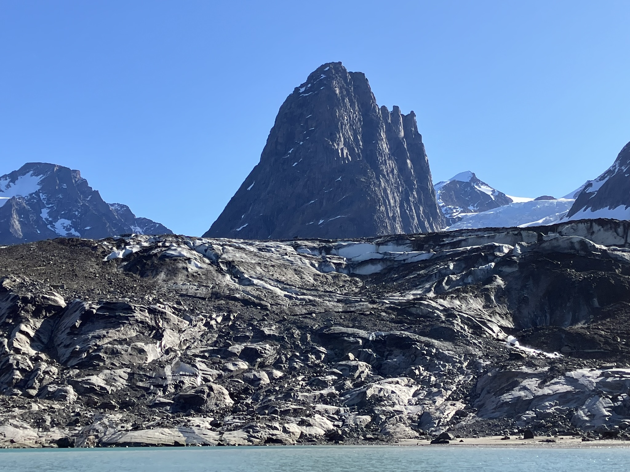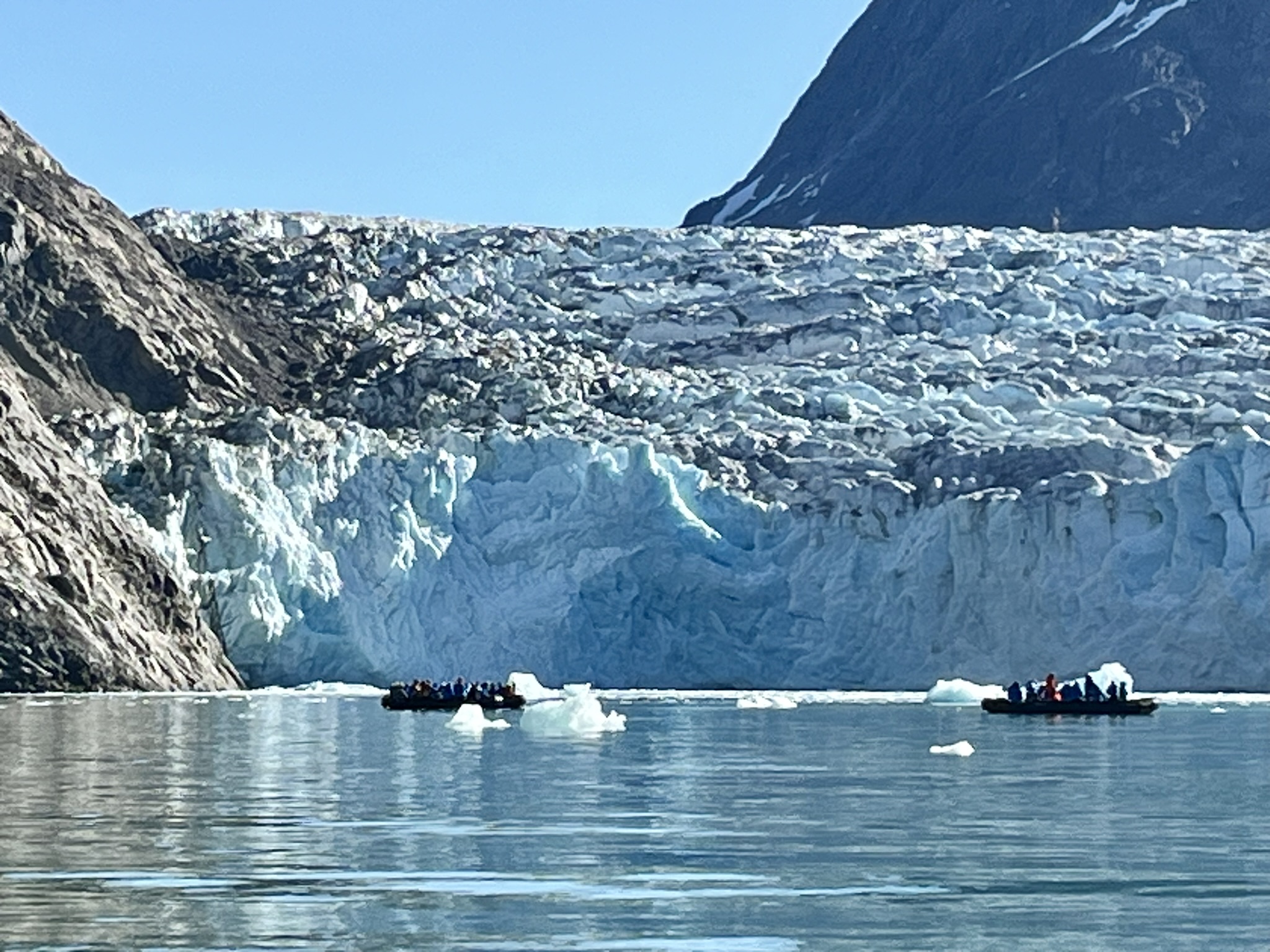 July 31: sailing NE across the Davis Strait. We were reversing our 2023 itinerary. That returned us to Greenland’s capital, Nuuk. A warm day. We again had lunch there, and again skipped the “hot sled dog” (actually musk ox) on the menu. The next day we returned to the spectacular Kangerlussuatsiaq Fjord. There was more open water than last year, and less ice (it was still summer, albeit near the Arctic Circle).