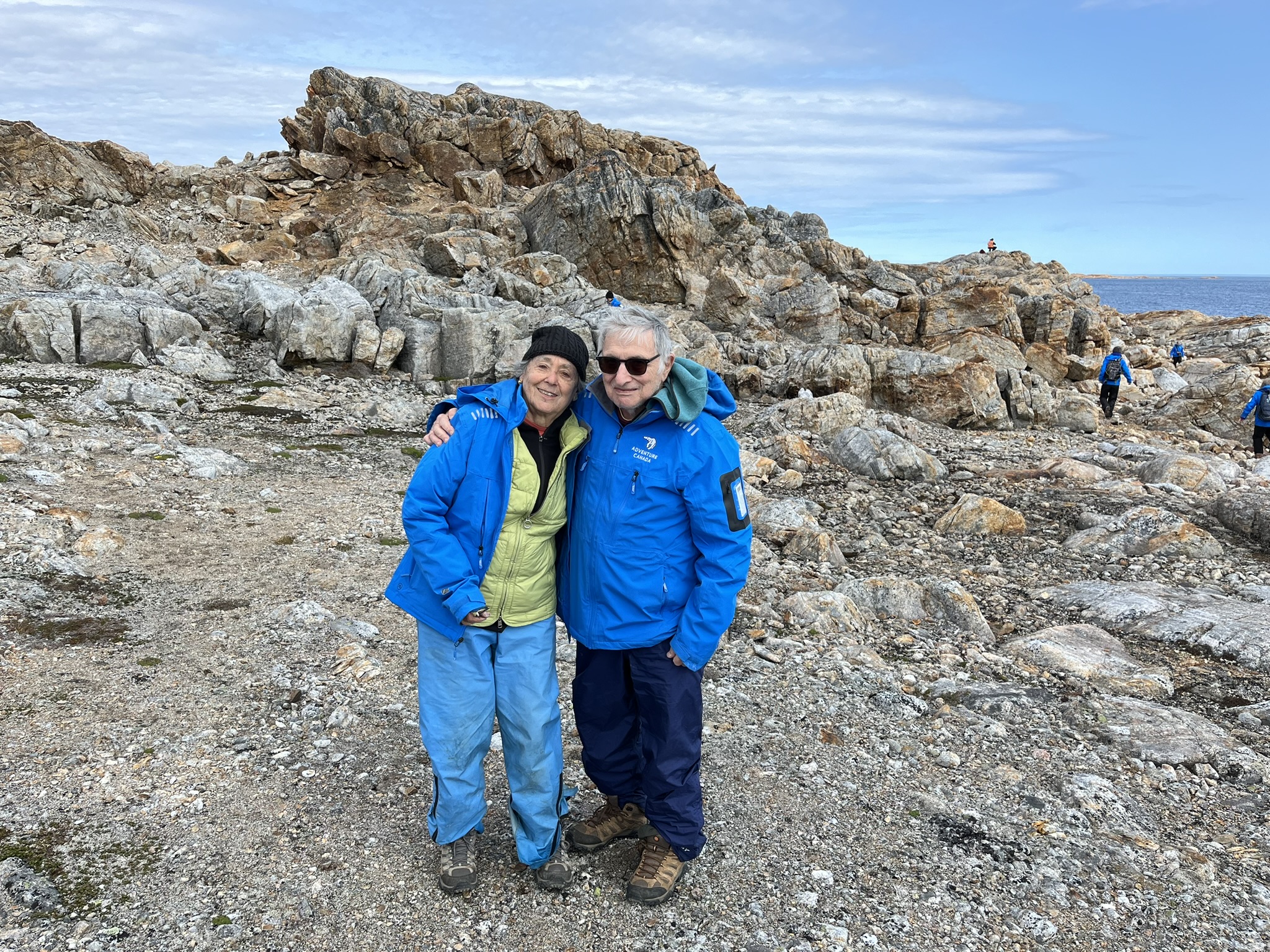 Last September (2023) in St. Johns, Newfoundland we disembarked our ship, the Ocean Endeavour. After two weeks in the Arctic. In July this year we got back on the same boat. This time we were in Iqaluit, Baffin Island, in the Canadian Arctic.. Its population is about 8000, more than half that of the entire island, which is the largest in Canada. We had a tour of downtown Iqaluit, The visitor center shares space with the library. Among the new books was Yiddish for Pirates, by Gary Berwin. Susan ordered a copy as soon as we got home.Except for the addition of a versatile coffee maker, the ship was little changed from 2023, so I will not redescribe it. We were 162 passengers, 51 of whom had traveled before with the same company. Thirty-eight of us were American (one from nearby in Brooklyn), most of the rest from Canada. Some Wild Women were aboard, just as in 2023. Many lectures and slide shows in the lounge. A staff guest, Tom Kovach, astoundingly memorized the first names of 209 people on board in a single day. He demonstrated this feat to a lounge full of us. Other guests included Bruce Kidd, who ran for Canada in the 1964 Olympics and became a sports historian. Having traveled in the Arctic with several different companies, we believe that what stands out with Adventure Canada is their commitment to the Inuit community—in hiring, opportunities to and inform guests about important issues, encouraging continuing education. On our trips we met a young Inuit archeologist, a lawyer, a woman just finishing an education degree.