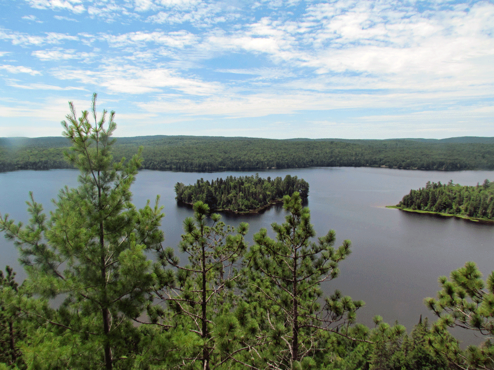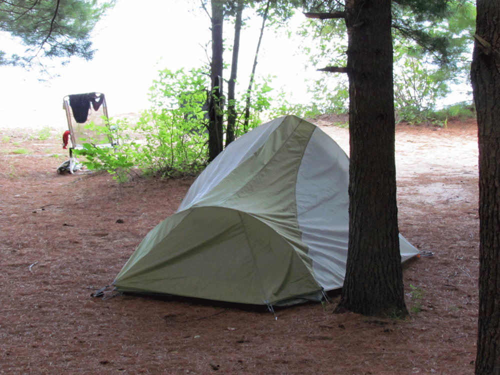 We started at the Achray Campground, on the eastern side on Grand Lake. Susan declared it the best campsite she had ever seen. It is rather small (be sure to book ahead) and happily free of dogs and radios. We (successfully!) pitched our tent 50 feet from the water. The swimming was fine. You can sit by the shore and read or think or whatever; there is still light at 9:30.