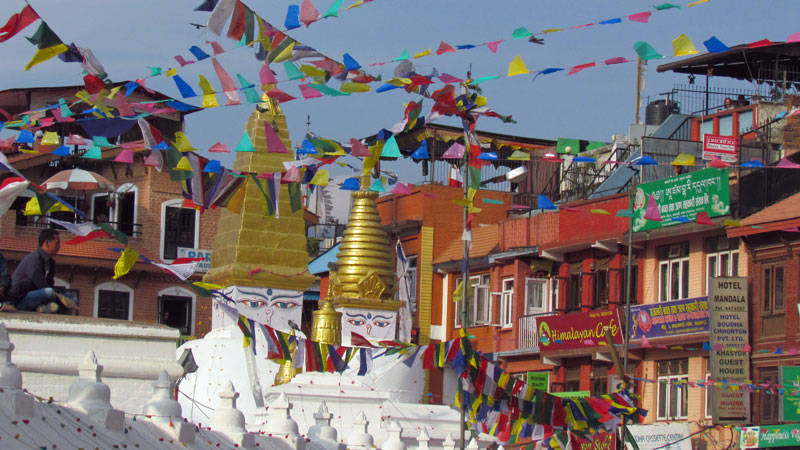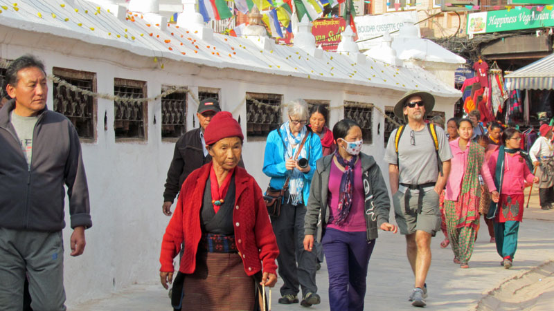 We could hardly go to India without visiting Nepal, so on March 10 we flew to Kathmandu. We were met at the airport by folks from Phurba’s trekking company, Himalayan Sherpa Adventure. It was Phurba who had arranged our 1998 Kangchenjunga adventure. This time we brought him three fellow clients: my cousin Vivian from Portland (Oregon), and, from Denver, Deidre and Joe, who had been with Susan in Peru in 2012. It was the first time in Nepal for them all, and Phurba had created an easy trek for us.