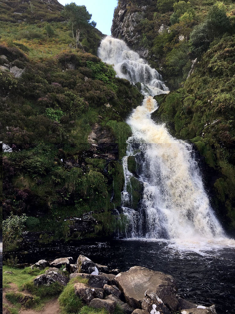 Soon we were off the coast of Newfoundland. We made a morning stop at Anse_aux_Meadows , which we had visited in 2009. It is the oldest Norse settlement in North America. The nest afternoon we ventured on an “intermediate hike” in the Terra Nova Park. It was a lovely three-plus miles return along the water, ending in a modest waterfall. The trail has little uphill, but was crossed by tree roots. You had to watch your step. Although modest, the hike was enough for me. We were rewarded afterwards by an impromptu singing session by crew members, with guitars and other instruments.