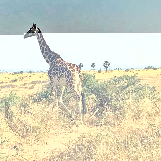It was in the park that we attained one of our prized objectives—a balloon ride. This required a 6:10 morning departure from the lodge and a long drive as the sun rose. We found a big parti-colored shape sprawled on the rough plain. In charge was David, a Ugandan who had spent seven months balloon training in Luxor, Egypt. (The balloon company, the only one in the park, is Egyptian-owned.) He had to qualify first as a commercial pilot. We had faith in David, but we weren’t so sure about the balloon. The idea was to heat it up with blasts of fire, so that it would rise, as balloons are supposed to. The problem was the wind—-it was gentle, yet strong enough to push the inflating balloon sideways. After the second failure, I was ready to return to the lodge. But the third try was a triumph. After being instructed on how to assume the “crash position,” we climbed into the small basket. Up we went, and for the next hour David gently glided us over the plain, spotting wildlife. We stayed only a few hundred feet above the ground. When we dipped too far, David fired up the heat.