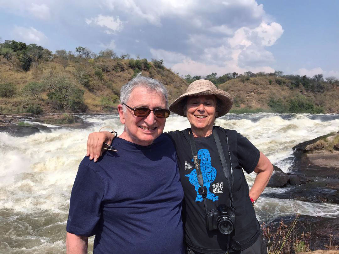Drive back to Kigali for another night at Heaven, then fly farther back to Entebbe. My first visit to Uganda since 1967. Doubtless the place has changed greatly, though memory fails me here. From now on we were in the care of Natural Habitat Adventures, which is affiliated with the World Wildlife Fund. We had signed on first for a private trip north to Murchison Falls National Park. Our splendid driver Edward took us there in a land cruiser—an eight-hour trip. The roads north from Entebbe and around overcrowded Kampala were excellent, but after a while dirt took over. Murchison Falls is quite unlike Niagara or Victoria, in that it is not broad. Rather, the huge flow of the White Nile is forced through a rocky gap only 23 feet across. Then it roars and boils some 150 feet through a rocky chasm. We viewed it from the top—spectacular and scary. In the 1950 film, King Solomon’s Mines you can see Deborah Kerr lounging in this spot. On a later day we approached the falls from the bottom, on a 20-person boat. This was spectacular in a different way, though the boat had to turn back a mile away because of rocks.