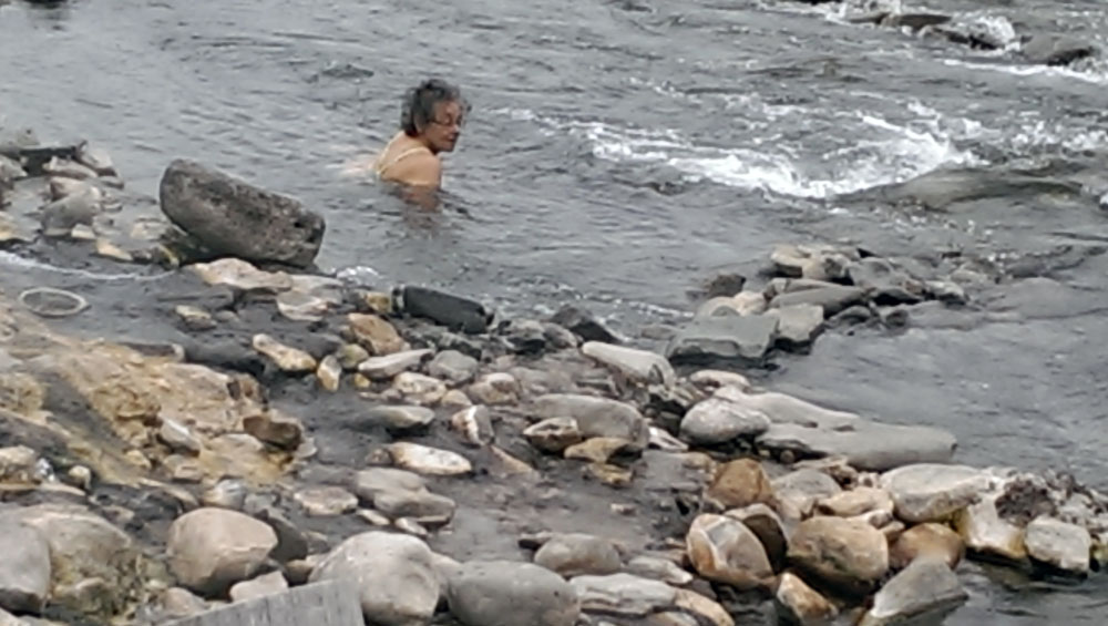 Our great weather vanished soon after we reached Yellowstone. We awoke to heavy snow, which persisted much of the day and dropped as much as eight inches. (This is not unusual for mid-September.) Even after Labor Day Yellowstone is crowded. People no longer feed bears, but they stop on the road if they see them. Much easier to spot are the huge, placid bisons, whose numbers have grown so sharply that they may have to be culled. We did take some hikes, beginning with a partial ascent of Mount Bunsen. Trail note--“grizzly bears frequent this area, use caution when traveling.” As in the Tetons, we carried bear spray. We took a ranger-guided morning walk along the south rim of the Yellowstone River, spectacular and a thousand feet deep. On our last day, we walked a half mile along the “Boiling River” until Susan found the swimming hole. It’s very hot and very cold.