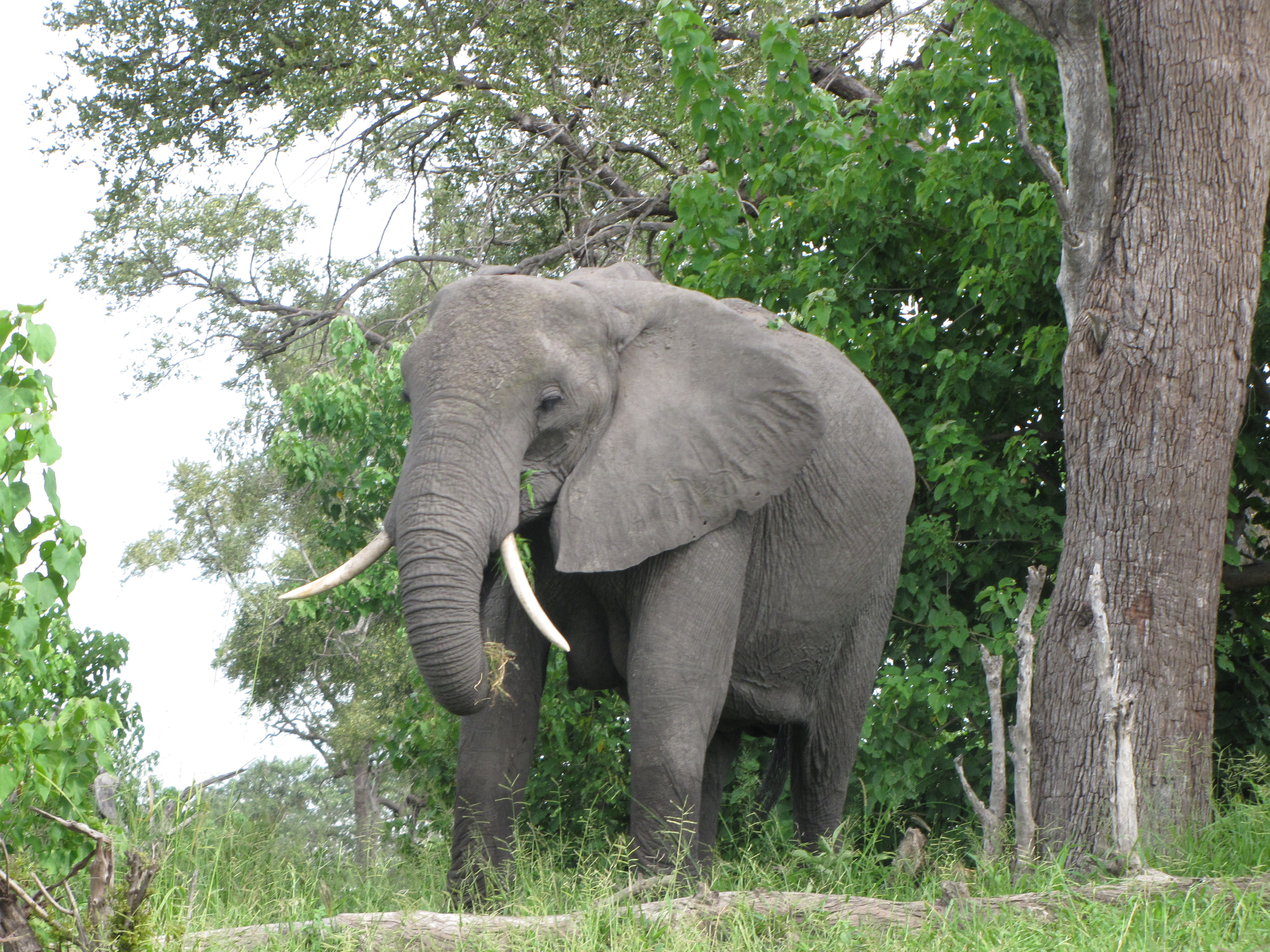 The camps themselves varied considerably. The first, Duma Tau, was the most elaborate, with long wooden walkways between the residences. Animals would imperturbably cross beneath the walkways. Game was particularly varied and abundant. The next place, Xigera, was quite different. It is in the middle of the Okavango Delta and therefore very watery. Water levels are highest in the dry season, because the rainfall takes its time seeping down from Angola. It has not reached the sea for over 20,000 years, but disappears among the dry lands to the south. One morning we were taken in a mokoro: a long canoe steered with a long forked pole. The mekoro (that’s the plural) are fiberglass made to look like traditional wood. This afforded us a good look at hippos, who spend much of their life at least partly submerged. They do, however, spend some quality time on land. NOTE: do not stand between a landed hippo and its water.